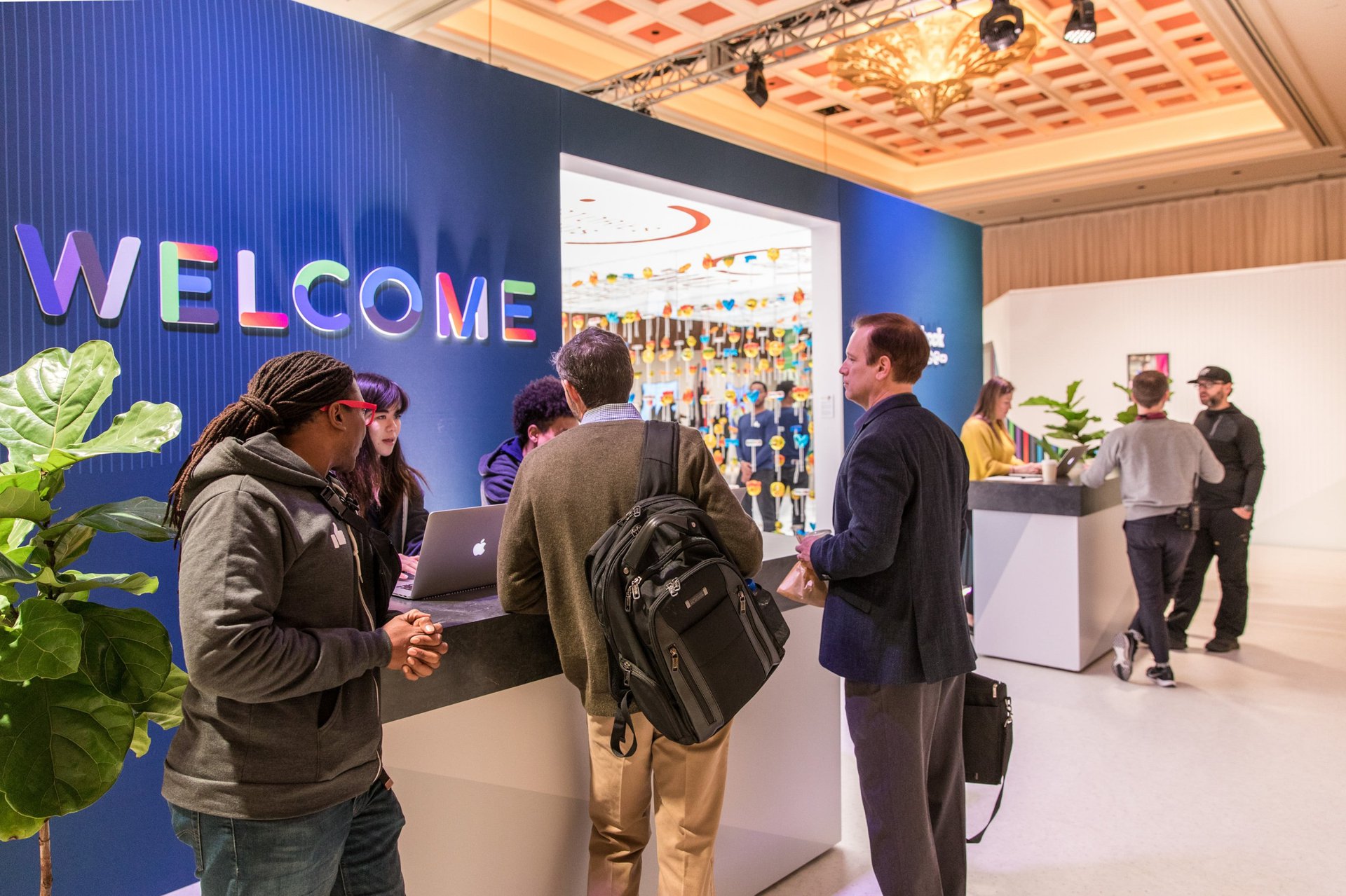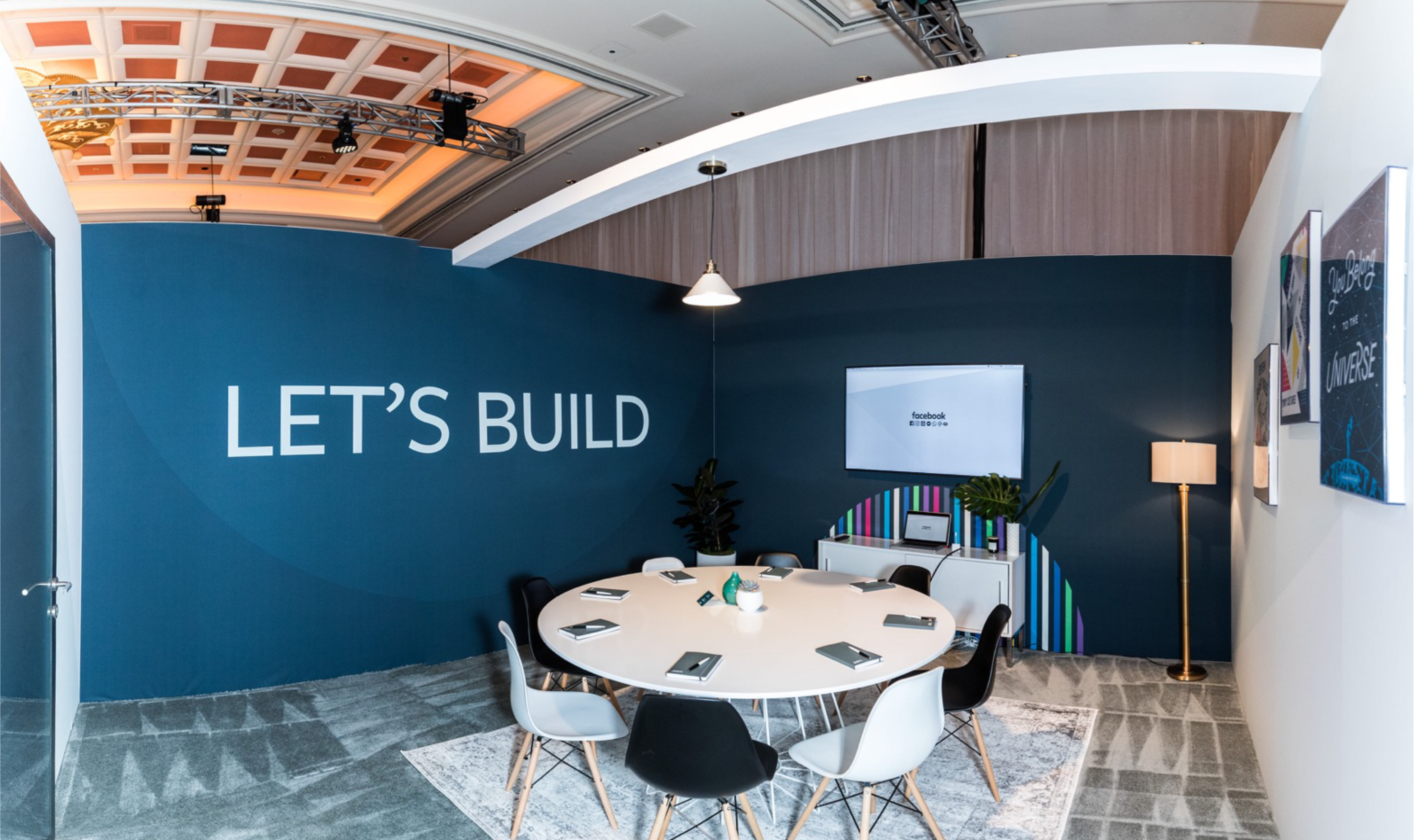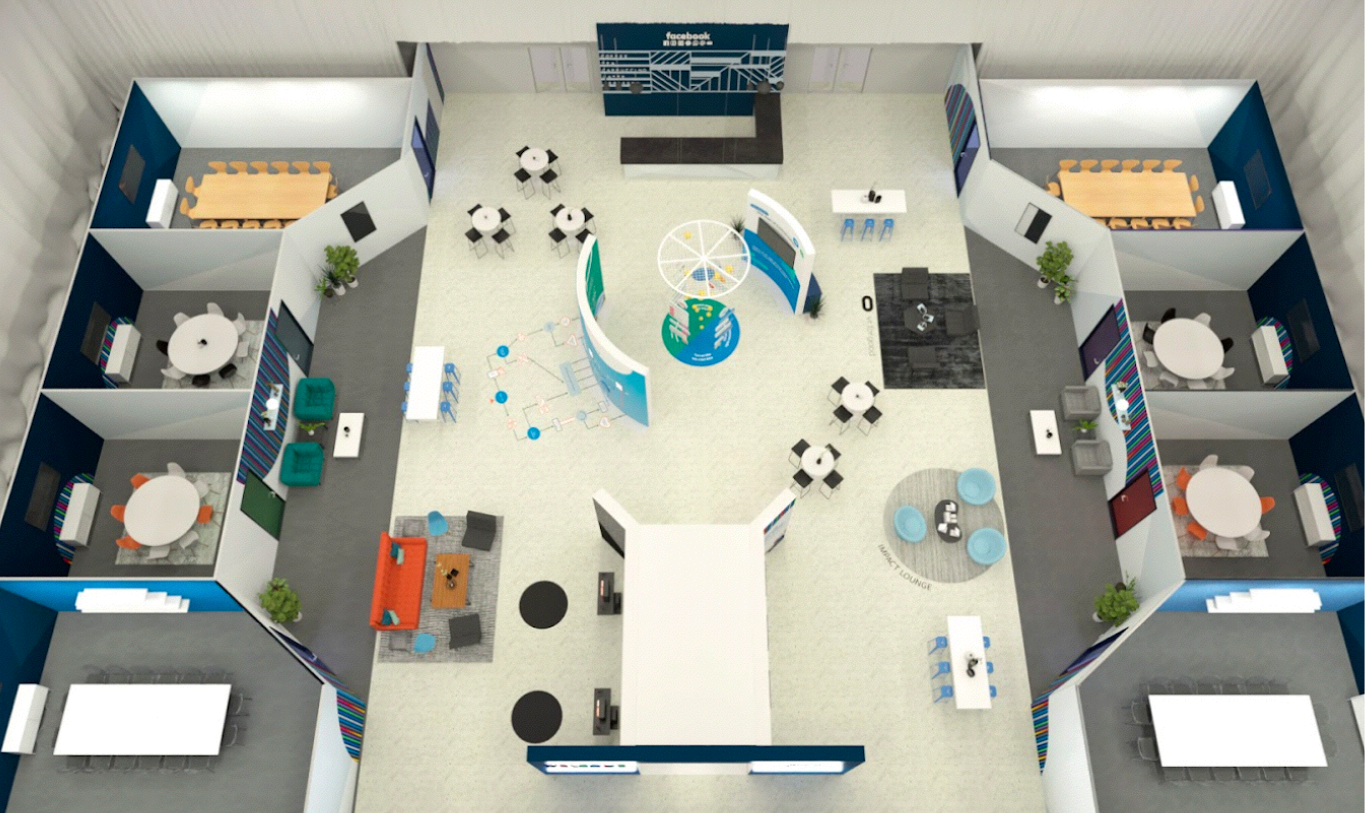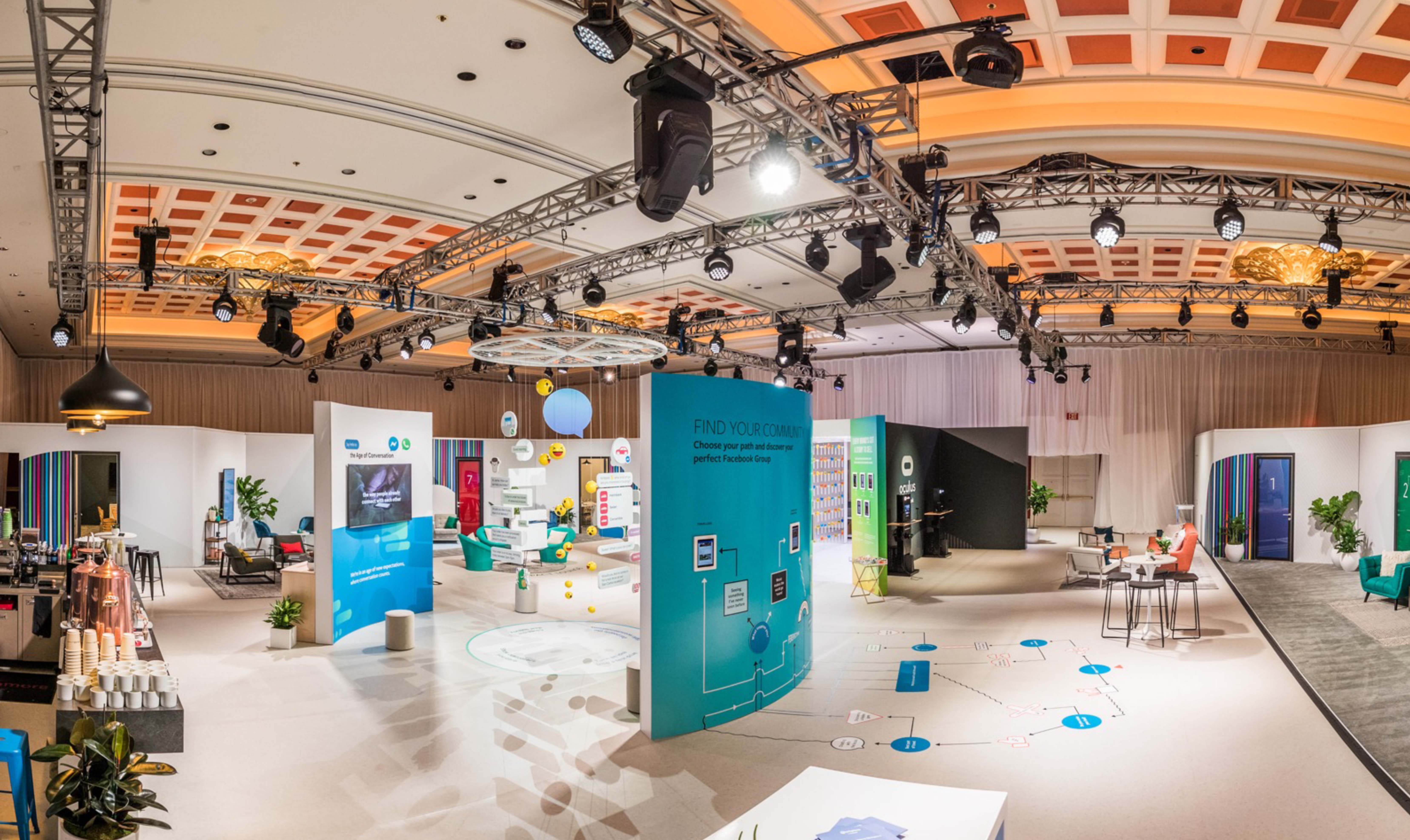Screens enabled Messenger video calls, connecting attendees with the outside world and demonstrating that storytelling isn’t confined to physical environments. A coffee bar, cozy conversation spaces, and conference rooms supported meetings, content capture, and networking.