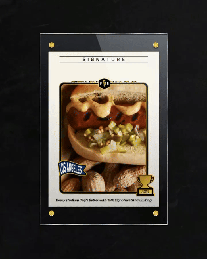 Baseball season wasn’t just for Dodger fans, though. Across social, we released regional recipes as collectible baseball cards. We created a collectible deck of Stadium Dog trading cards inspired by the teams facing off in the finals and the signature flavors of their hometowns.