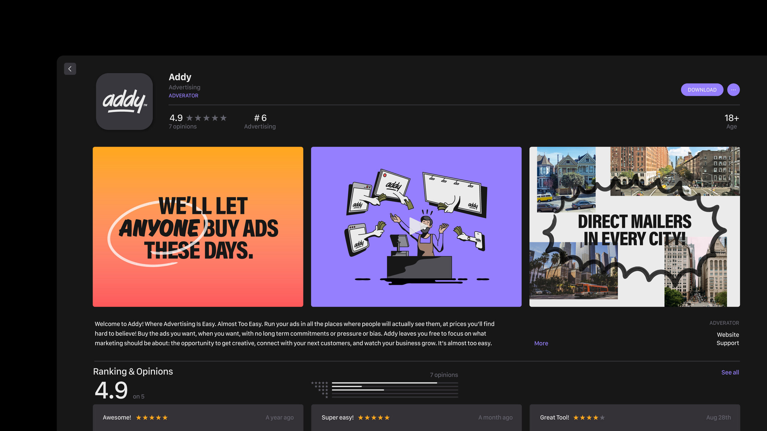 Addy makes advertising easy. Suspiciously easy. Some might say it’s almost too easy.