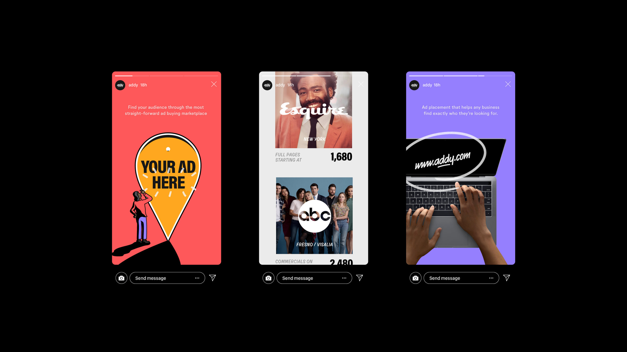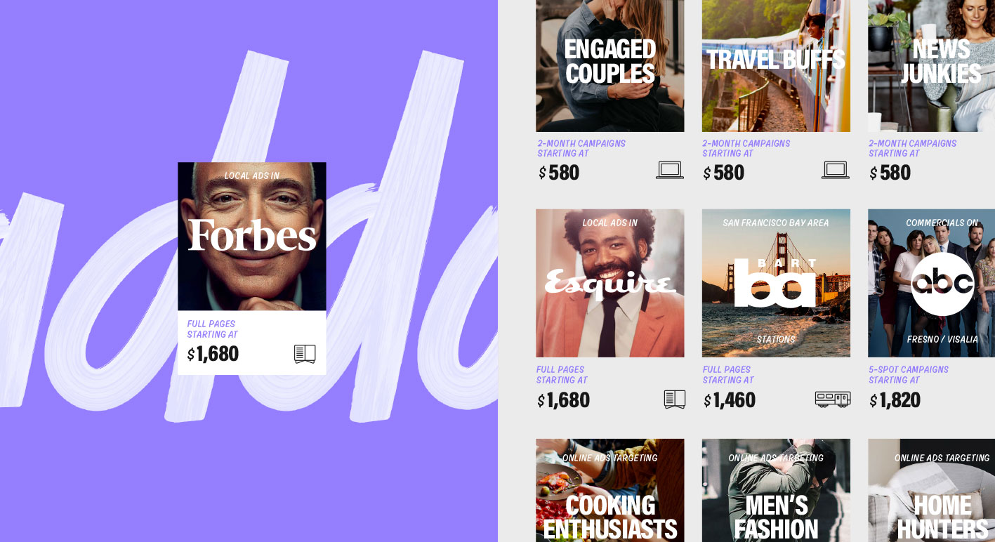 Since Addy lets anyone place ads like the big brands, we had to appeal to both broad and hyper-niche audiences. The visual ecosystem is inspired by a modern internet-era reimagining of classic print, OOH and storefront advertising.